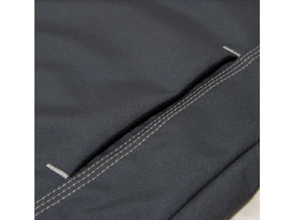 Praktické detaily – prodloužená záda, pružná kapuce, pohodlné kapsy a silné poutko na zavěšení i na široký věšák.