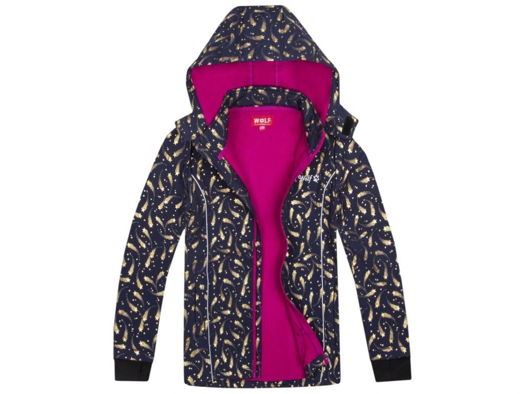 Dívčí zateplená softshellová bunda Wolf B2366 tmavě modrá, zlaté komety
