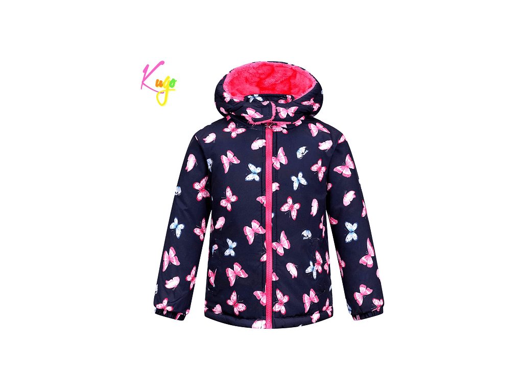 Dívčí zimní bunda KUGO KB2339 tmavě modrá s motýlky