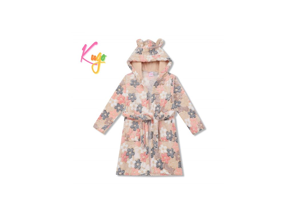 Dívčí župan KUGO FZ1083N béžový s kytičkami